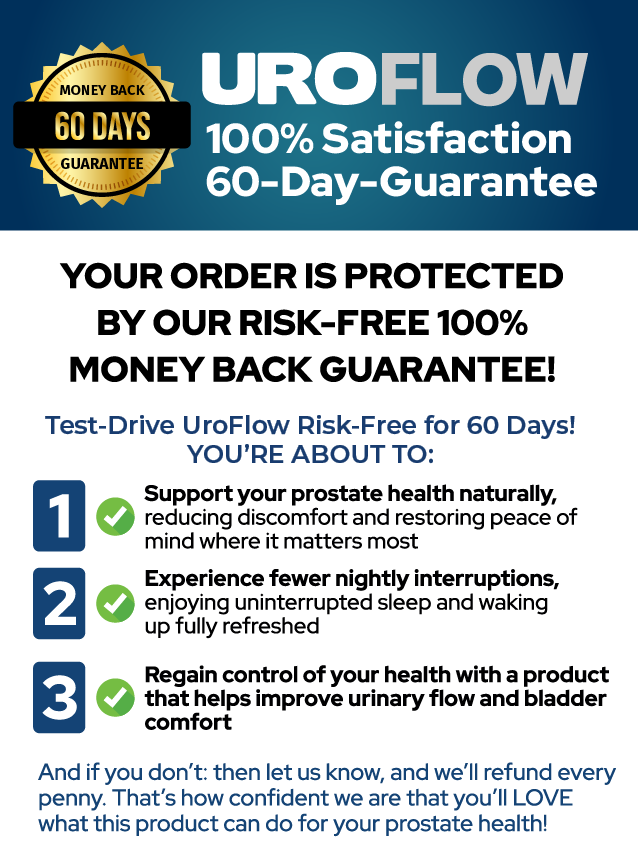 Currently, UroFlow is backed by a 60-day money-back guarantee, giving you a completely risk-free opportunity to try it for yourself.